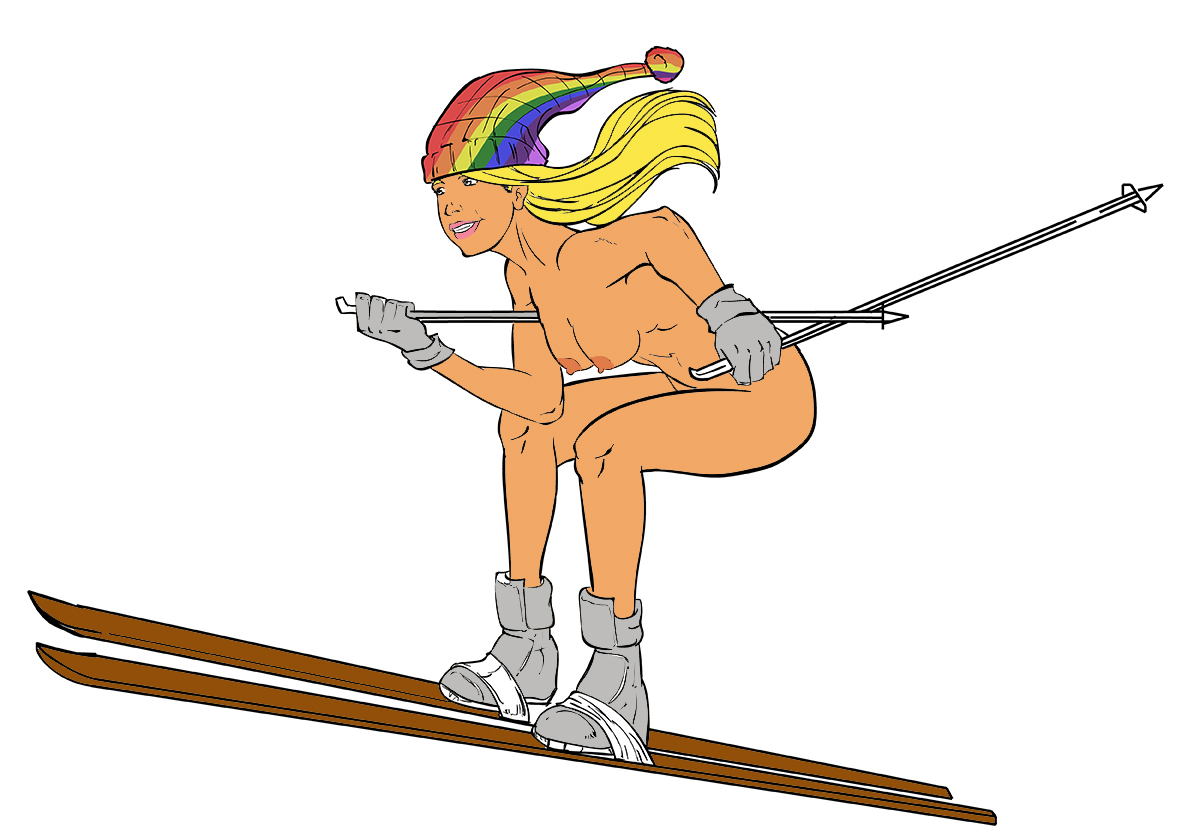 Tiring of her own introspection and wanting a distraction from the itchy fabric on her legs, Betsy put on a recording of Solstice carols and sang along with them until she saw the "Welcome to Gaston Village" sign. As if on cue, fat flakes of snow began to fall, adding to at least eight inches already on the ground. Betsy's family always stayed at the same ski lodge, so she knew the way. She parked her little VW in the snowy parking lot and walked towards the lodge entrance, nervously adjusting her outfit as she did so. As she entered the lobby, the hubbub of voices quieted, and she heard a few gasps and giggles. Betsy paused in front of an ornate mirror to adjust her rainbow-striped scarf and to pull up her leg warmers to mid-thigh. Other than these articles, she wore only the matching hat and her knee-high boots.