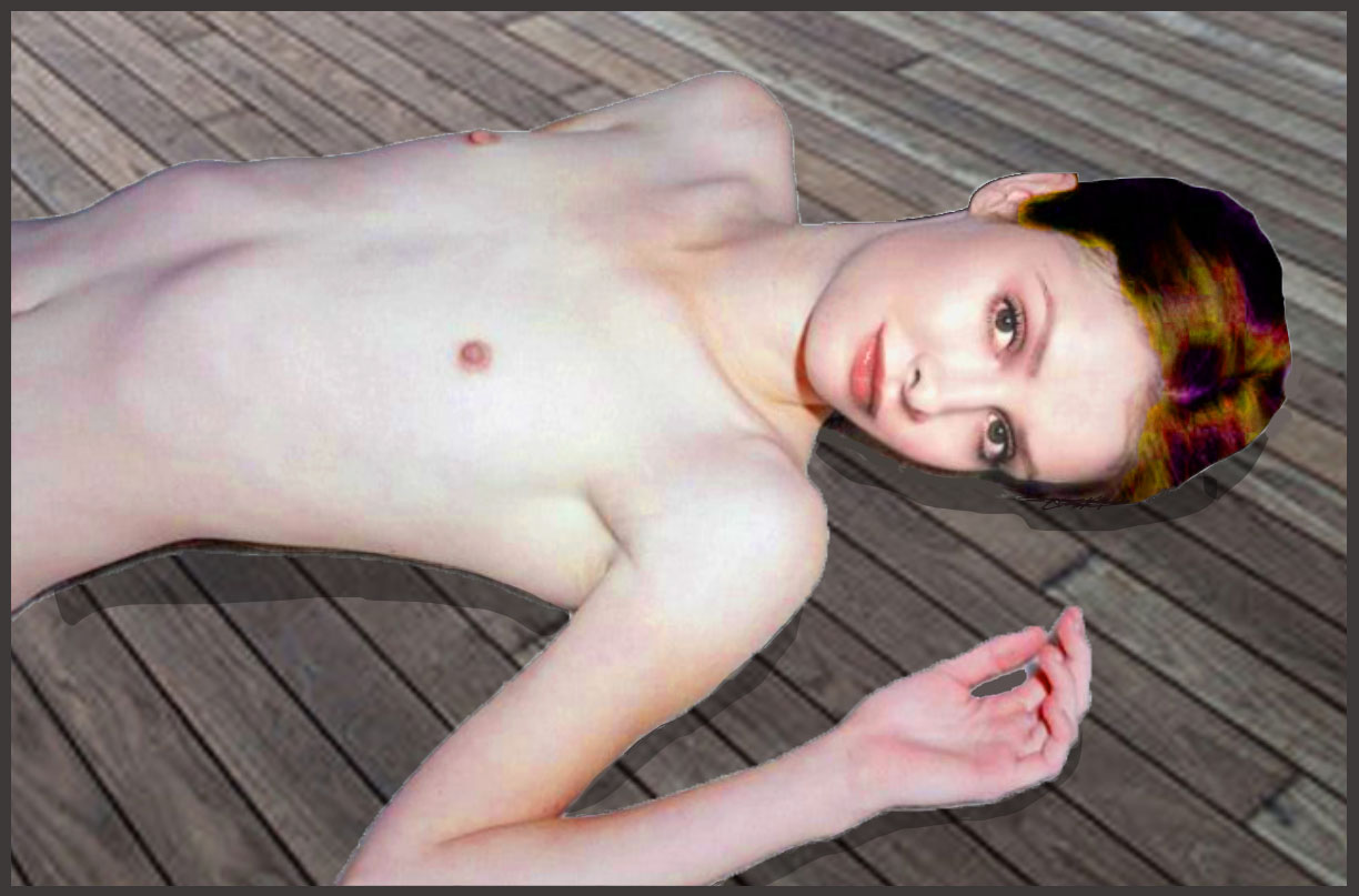 Andrea was watching with amusement, so I waved her over and got a conversation going among the three of us before draining Dana's drink and excusing myself away to go get more. I kept an eye on them all evening, and Andrea and Dana seemed to be hitting it off in a friendly if not flirty way. Whenever Andrea got drawn away to other conversations, I made sure Dana was never standing awkwardly alone. I would pop up next to her like a genie and get her pulled into another group. This was shortly before I met Mona, and I wasn't seeing anyone, so I instigated little outings for the three of us, and because I was there, the other two could relax and not think of it as a date. But I did. They quickly became friends and were good at making each other laugh. One time at my place when we were all a bit drunk, the conversation somehow came back to pronouns, and Andrea pointed her finger at Dana and told her in no uncertain terms that she was, in fact, a girl, and had always been a girl, and it didn't fucking matter what was between her legs. I was expecting Dana to get mad, but instead she collapsed into sobs and cried and cried in Andrea's arms. The next day at work, Andrea and I spread the word, and no one called Dana "he" ever again. Sometimes it was just me and Dana hanging out at my place. Naturally, I was always naked, and one sunny day, after a couple of stiff vodka tonics, I got her to strip down too so we could sunbathe out on the deck. I was wearing dark sunglasses so she couldn't see my eyes as I eagerly checked her out. She had a skinny little ballerina body, her ribs showing. I only got a quick glimpse of her penis dangling amid her bush, but then it hid shyly between her thighs as she reclined on the deck. Although she was flat-chested, her nipples were quite womanly and puckered into points despite the heat.